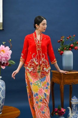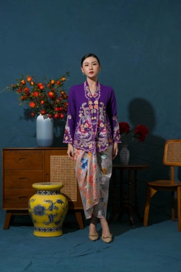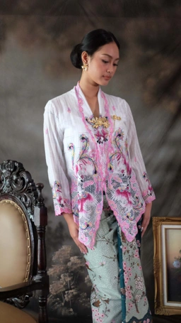 Long sleeves kebaya with phoenix embroidery